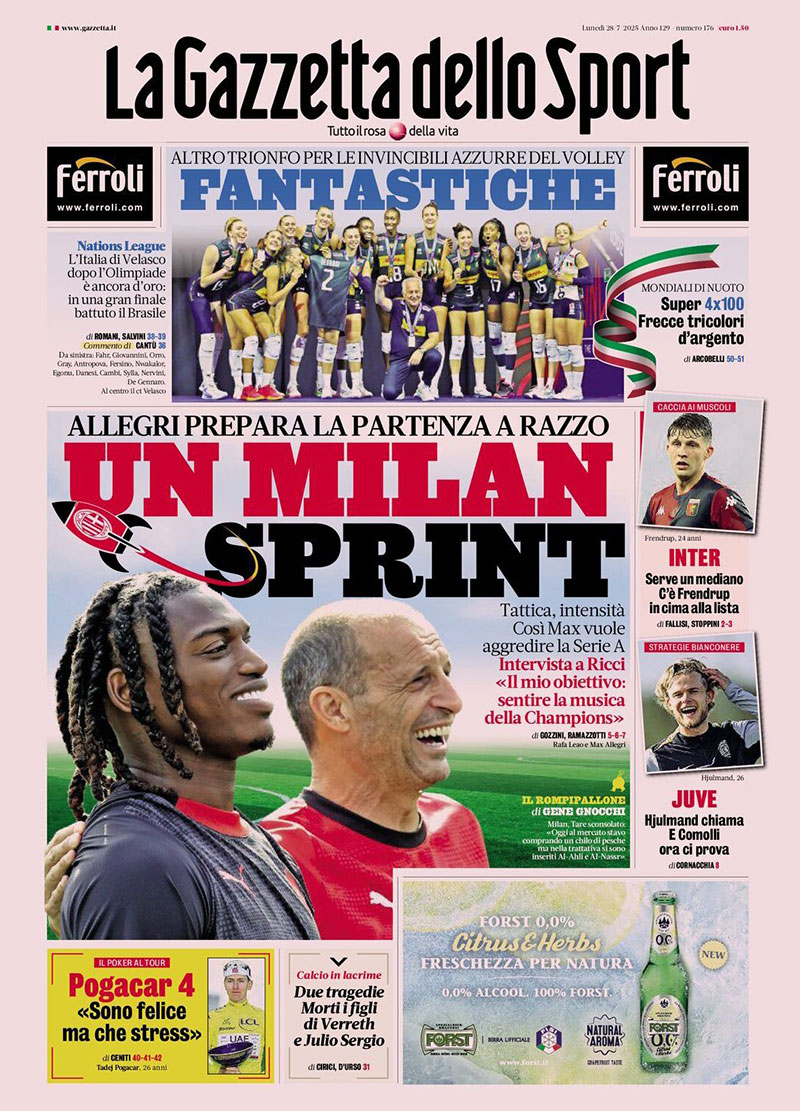 灋(fa)羅力(li)強勢(shi)登陸《米蘭體(ti)育報》頭版!